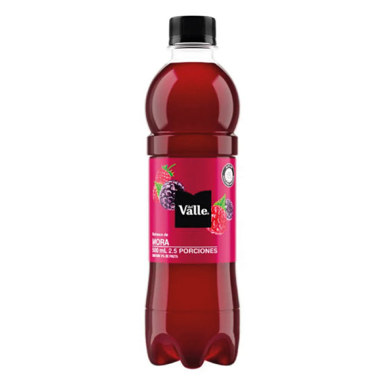El Jugo Del Valle Mora 500 ml, bebida a base de jugo de fruta con su delicioso sabor a mora, fortificado con vitaminas A y B1, para que lo disfrutes en cualquier momento